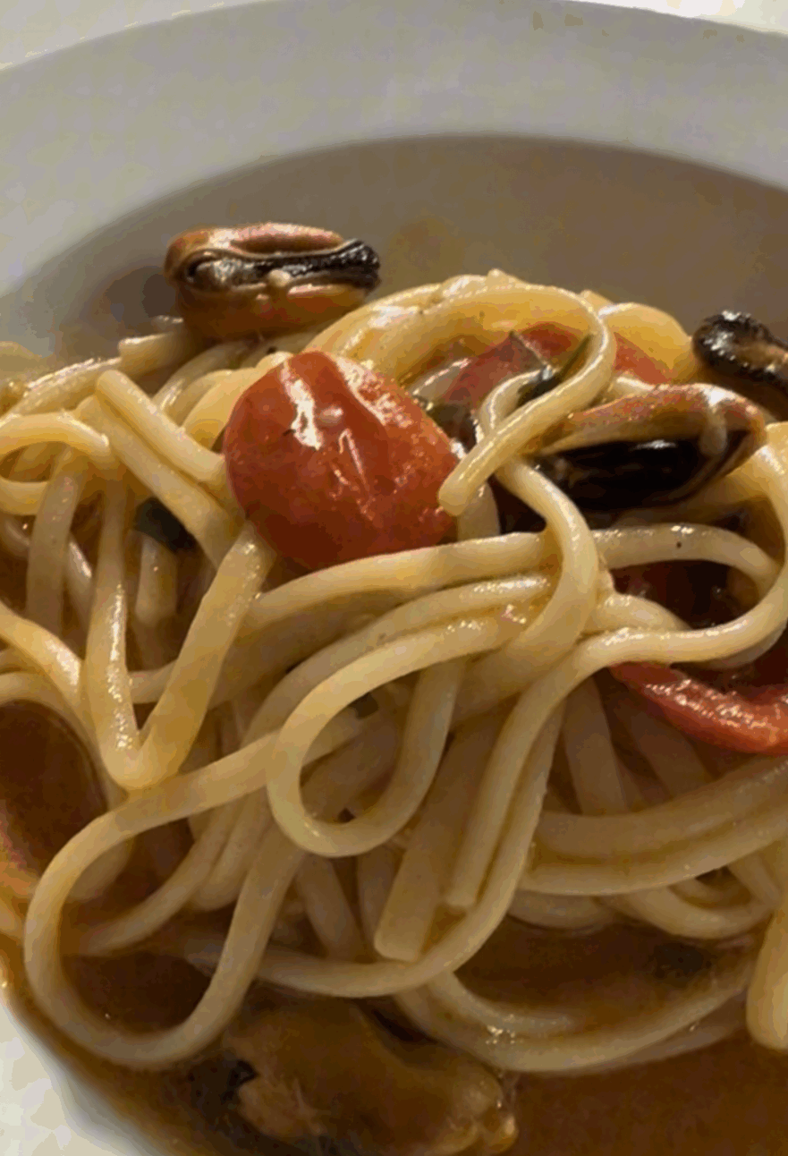 En realitat vaig fer linguine, que m’agraden més. En l’altra versió hi havia tomàquet pelat, aquí fem servir tomàquets xerri, millor si són tomàquets per penjar, són més gustosos i tenen més suc.