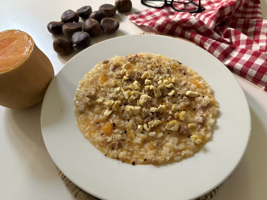 A mitja cocció afegeix la carbassa i la botifarra i continua fins que l’arròs sigui al punt.