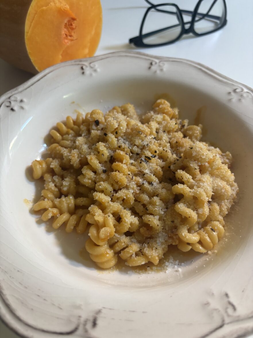 Cou la pasta segons les instruccions del paquet. Escorre-la i barreja-la amb la salsa de carbassa i formatge
