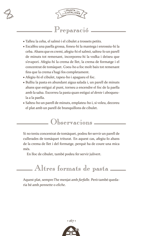 Aquesta fantàstica recepta i moltes més les trobeu en el llibre La pasta per als catalans. Disponible a Amazon, en qualsevol llibreria (si no el tenen el podeu encarregar) o dissabte 23 a les parades de Viena Edicions a la Rambla de Catalunya.