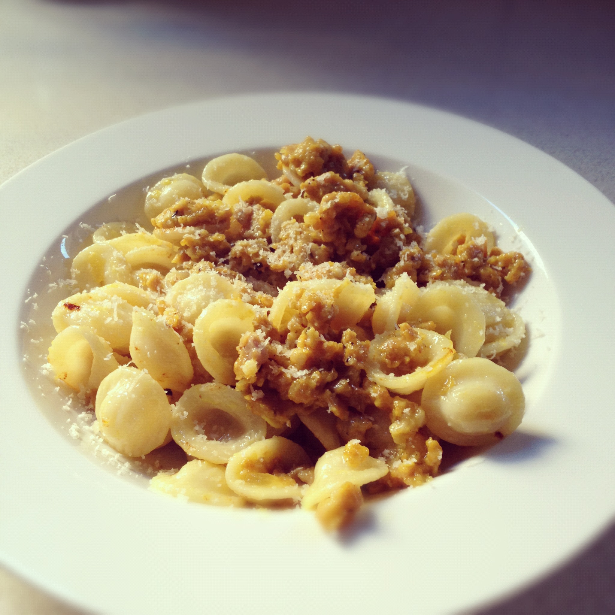 Originàries de la Pulla, la regió meridional que té Bari com a capital, les orecchiette s’assemblen a unes orelles (orecchie en italià) petites, i d’aquí els ve el nom. Tenen forma de disc rodó, gruixut, amb una petita cúpula a la part central. Una de les receptes tradicionals de la Pulla són les orecchiette amb bròquil. Són molt bones també amb salses de tomàquets i ricotta.